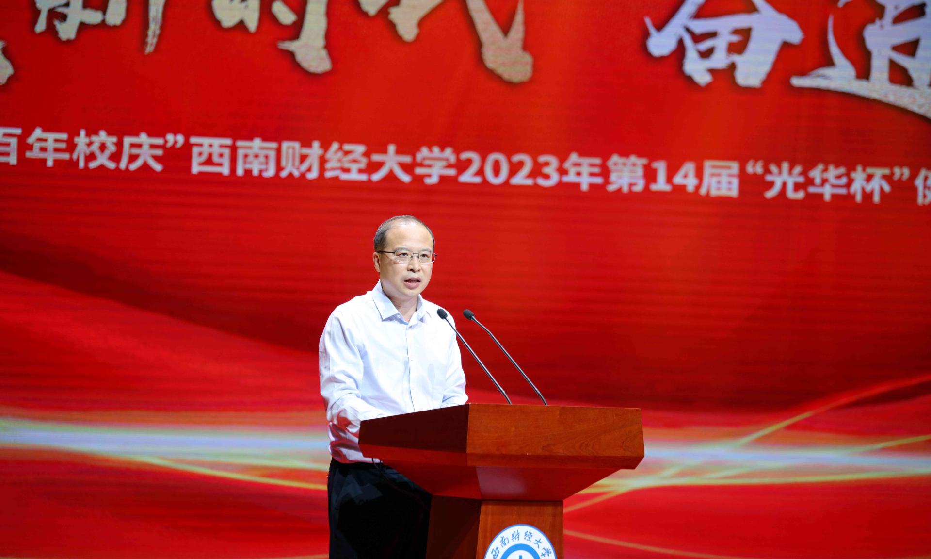 4月21日晚,“礼赞新时代·奋进新征程,迎大运·迎百年校庆”西南财经大学第14届“光华杯”健康活力大赛颁奖晚会在学生活动中心800人厅隆重举行。学校党委书记赵德武,党委副书记、副校长李永强,党委副书记、纪委书记孙殿明,相关职能部门和学院(研究院)负责人,江南在线官网(中国)全体教职工与学生、获奖同学代表等参加晚会。